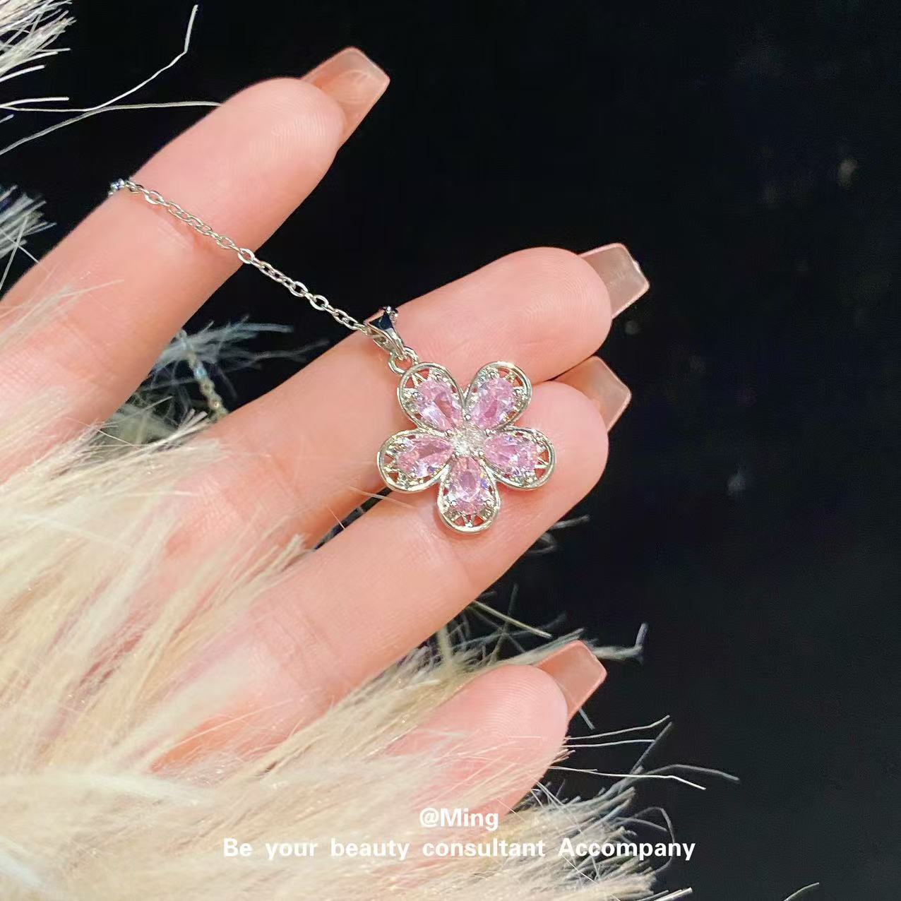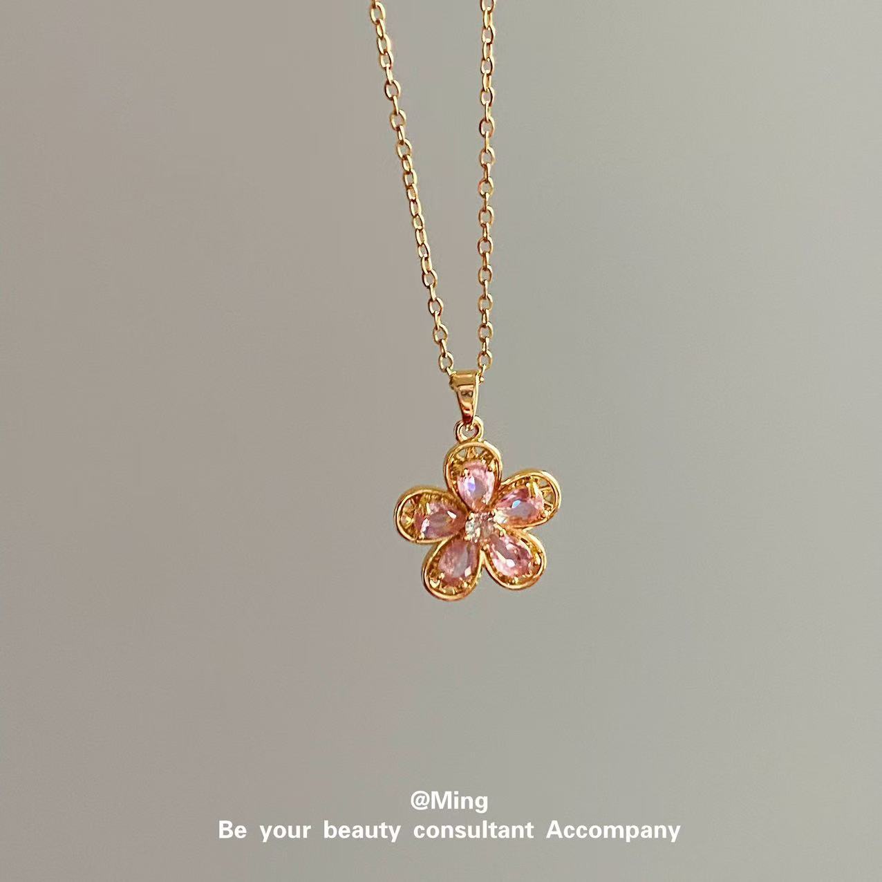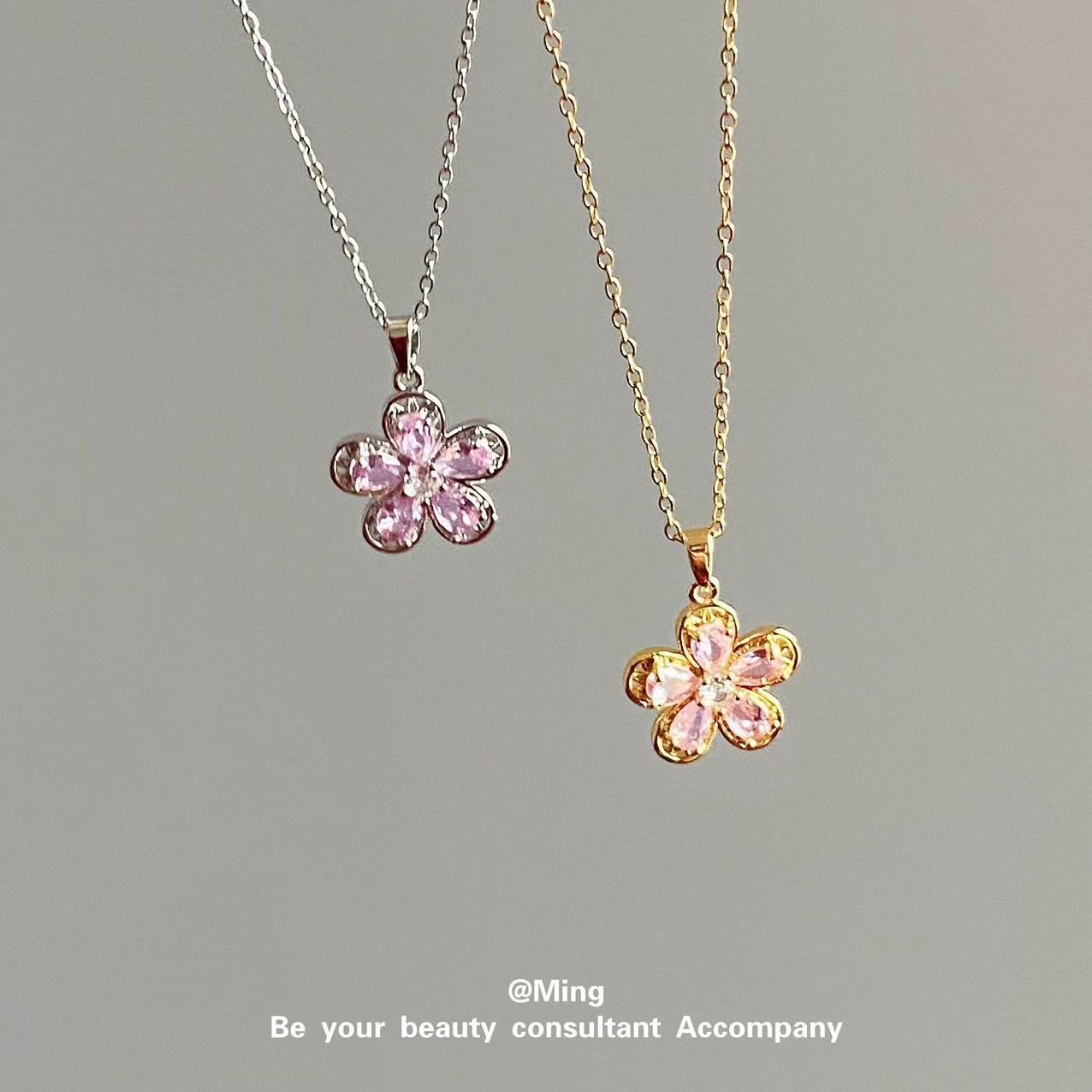 Zircon Studded Flower Stainless Steel Clavicle Necklace